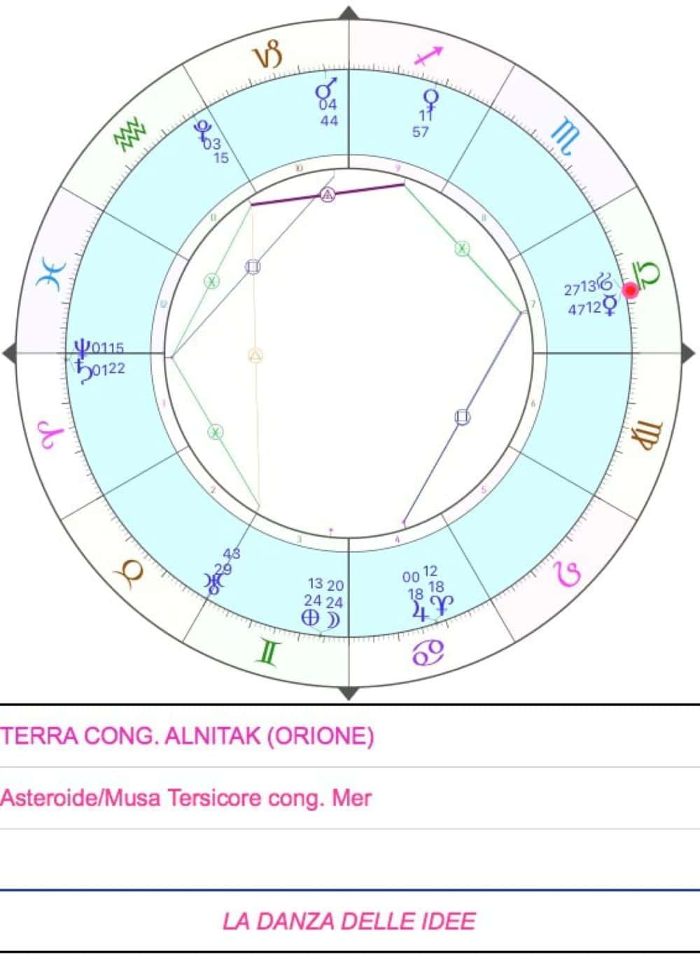 Hoy celebramos en el cielo heliocéntrico la conjunción en Libra entre Mercurio, el Mensajero Solar, garante de las simetrías y las correspondencias, el Maestro de la Música que pone en relación armónica lo Alto y lo Bajo y refleja el Modelo en todos los corazones del Sistema Solar, y el asteroide Terpsícore, la que se deleita en la danza, entendida como instrumento privilegiado para acceder a la solemnidad del espíritu, la Musa del movimiento que prepara para lo Sagrado… Una apoteosis de armonía y elegancia, realzada por la luz resplandeciente del puro Tercer Rayo de Libra, una emocionante danza celeste que nos lleva a poner alas al pensamiento y volar alto hacia la primera Idea, que no puede ser otra que el Cielo, ese Modelo que Mercurio nos insta a contemplar y nos guía a imitar, un impulso sublime para llevar los ritmos y los sonidos de las Ideas a cada pensamiento, palabra, gesto y relación de nuestra vida cotidiana, para así realizar —en palabras de uno de los más grandes intérpretes de la enseñanza de las Musas, como sin duda fue William Shakespeare— la «música de las vidas humanas»!